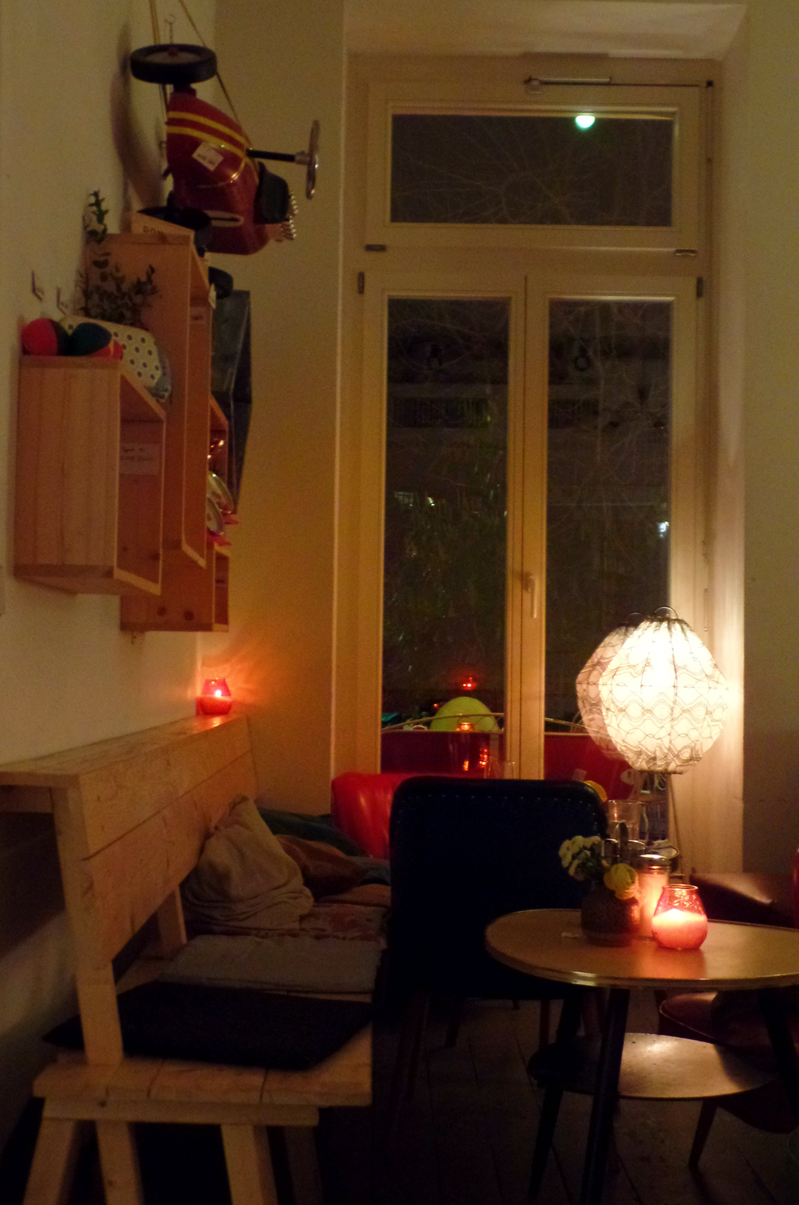 I first discovered Kauf Dich Glücklich with a friend a few months ago: we were going to a midnight showing of Casablanca at Lichtblickkino just around the corner, and needed coffee. But of course all the hard-working baristas had already cleaned their coffee machines. Desperately we marched on, until on Oderberger Strasse… was that a light still on?! It was more like several – that string of fairy lights around its sign was a beacon of hope.